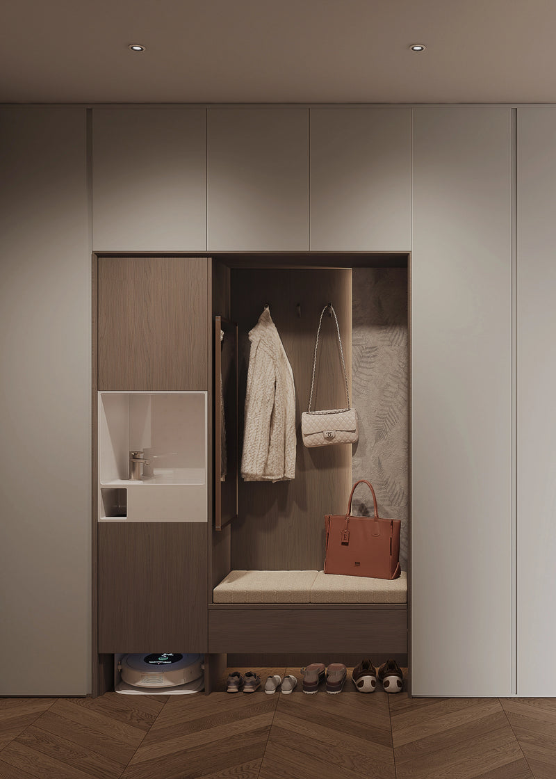 Featuring custom cabinets for shoes, coats, and accessories, along with premium shelving and organizational features, each element is crafted with precision to ensure excellence at every stage—from the careful selection of materials to the pursuit of reliability, safety, and lasting durability.