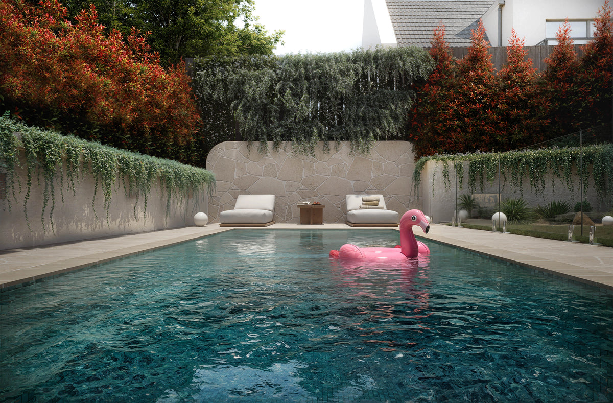 An uncompromising assembly of raw concrete, honed stone, and ribbed timber — every material in this luxury custom home in Melbourne specified to patina and age with dignity rather than remain pristine. Matte finishes purposely flatten the light, emphasising the porous friction of Traverse Travertine-look tiles and the cool dense temperature of the marble slabs, while every material intersection exposes a precise tactile threshold — transitioning from abrasive outdoor crazy paving to the yielding weave of interior boucle upholstery. These natural stone finishes and bespoke joinery surfaces will record the literal footprint of the inhabitants over time, asserting their formidable mass as they do.