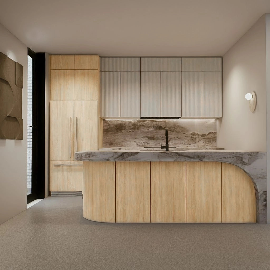Crafted from premium countertop and splashback stones, these custom kitchen benchtops and matching splashbacks feature a refined, smooth surface with subtle natural veining that elevates any modern culinary space. Their clean, minimalist design provides versatile performance—perfect for meal preparation, kitchen islands, breakfast bars, or as a striking focal point in contemporary interiors.