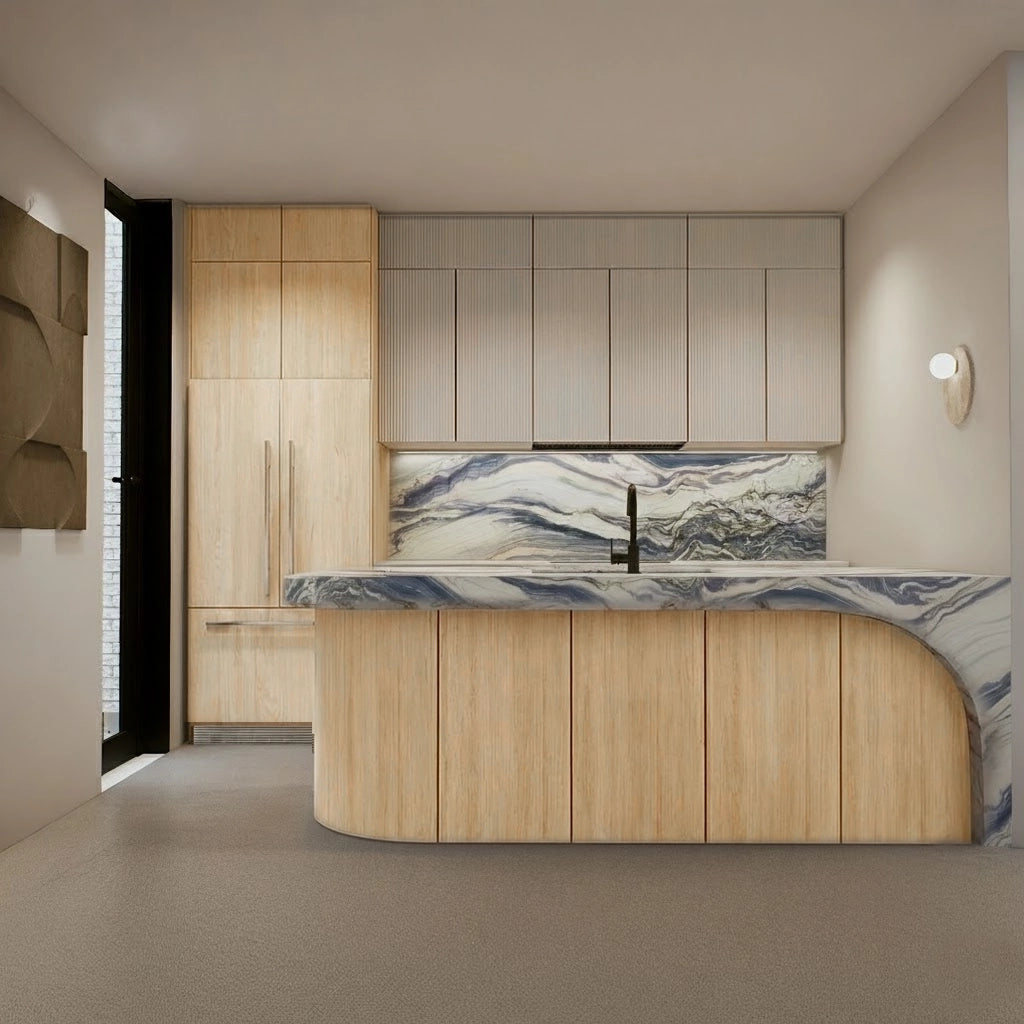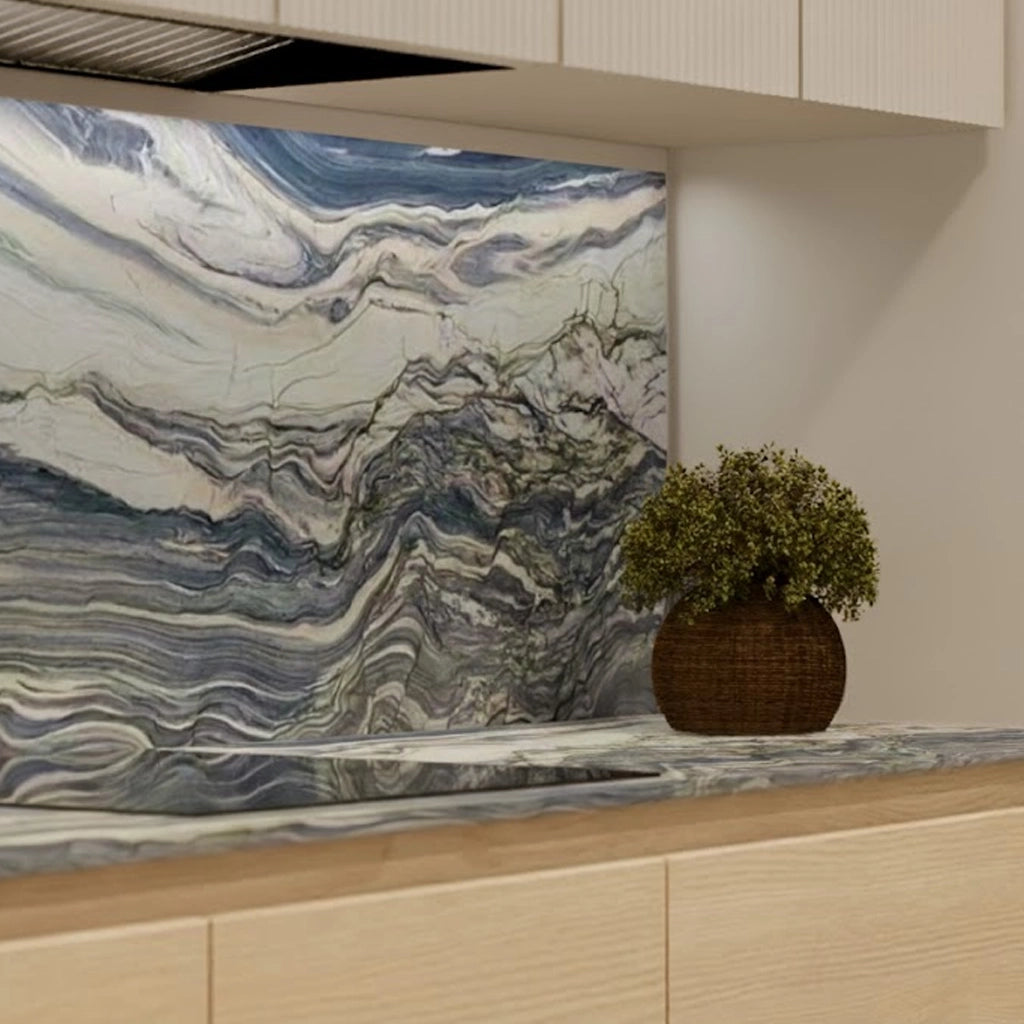 Crafted from premium countertop and splashback stones, these custom kitchen benchtops and matching splashbacks feature a refined, smooth surface with subtle natural veining that elevates any modern culinary space. Their clean, minimalist design provides versatile performance—perfect for meal preparation, kitchen islands, breakfast bars, or as a striking focal point in contemporary interiors.