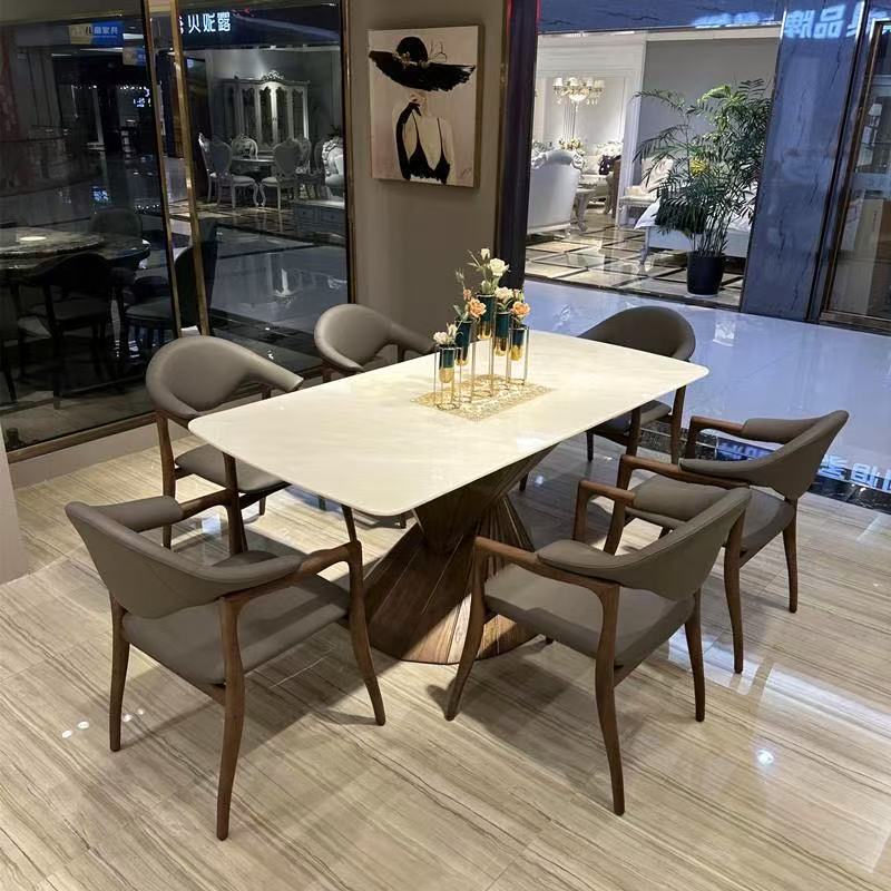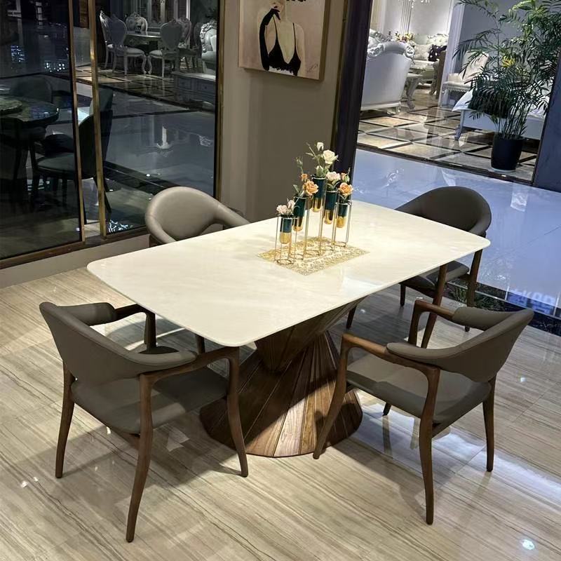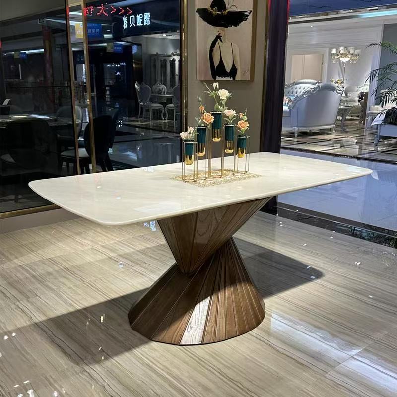 The Calais Prism Dining Table combines modern style with timeless elegance. It features a smooth white marble top and a unique geometric wooden base that adds character to any space. Perfect for both everyday dining and special gatherings, this table brings a touch of sophistication to your home.