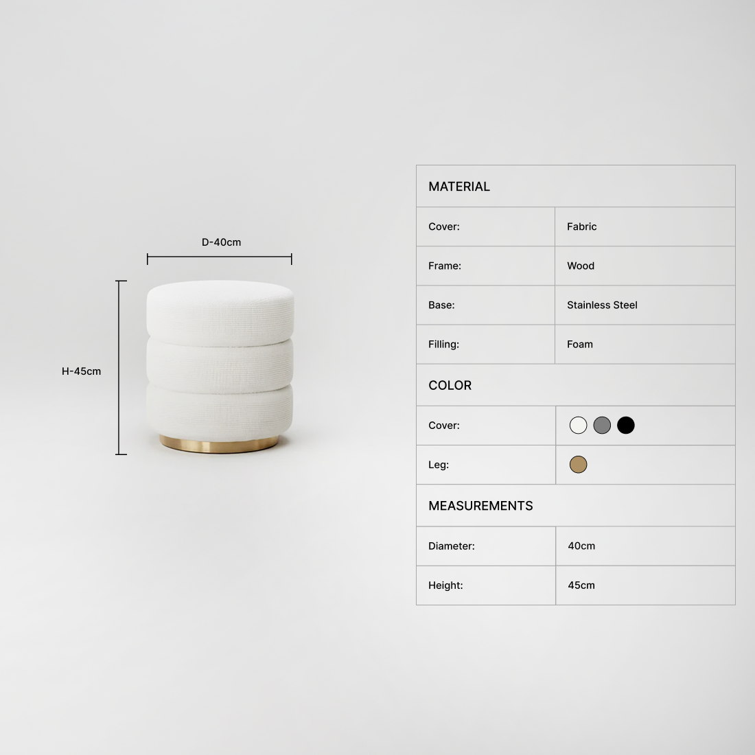 Experience sleek design and cozy comfort with our Stool Chair. Crafted with high-quality fabric material, this modern lounge chair adds a touch of sophistication to any room. Relax in style and enjoy the benefits of its durable and luxurious construction.