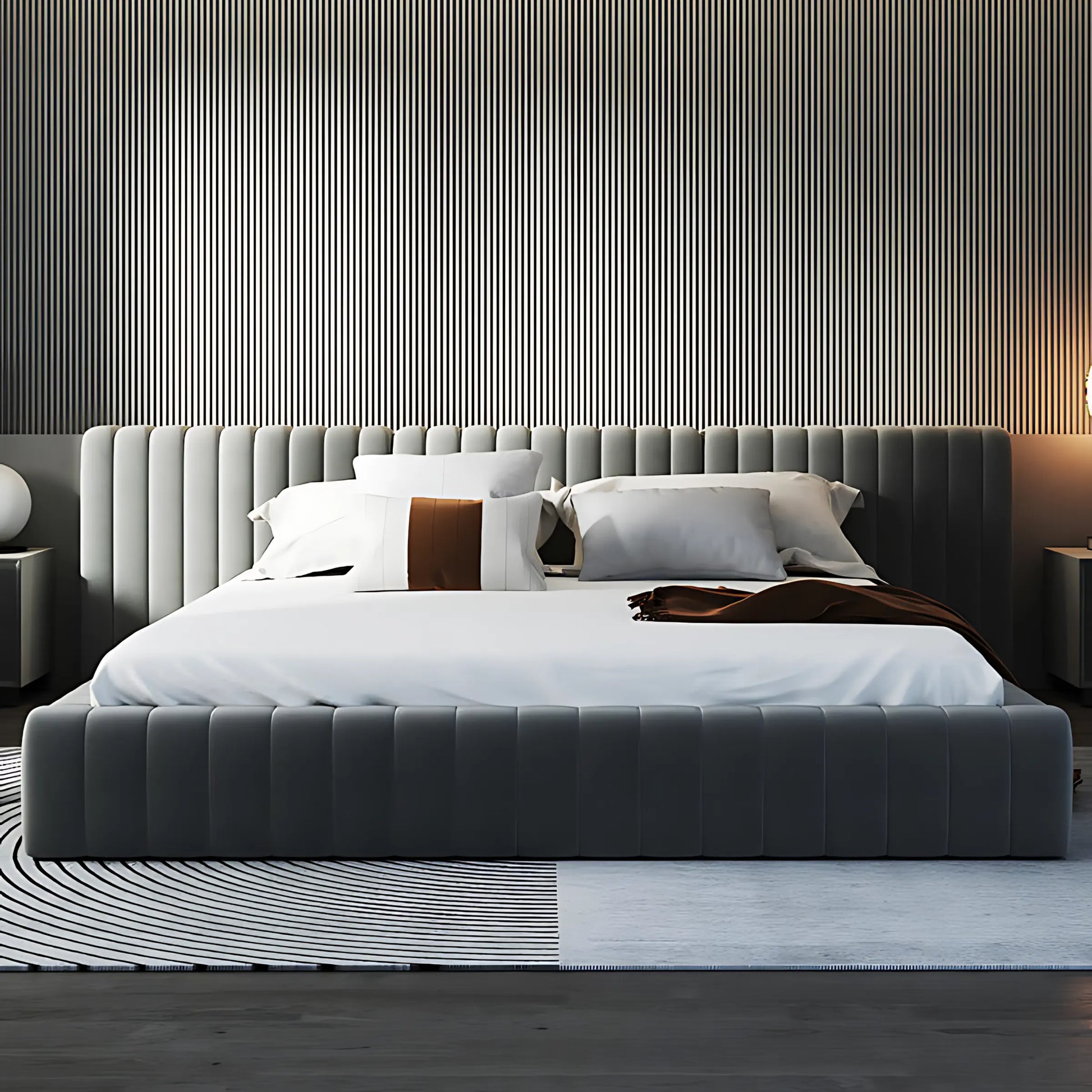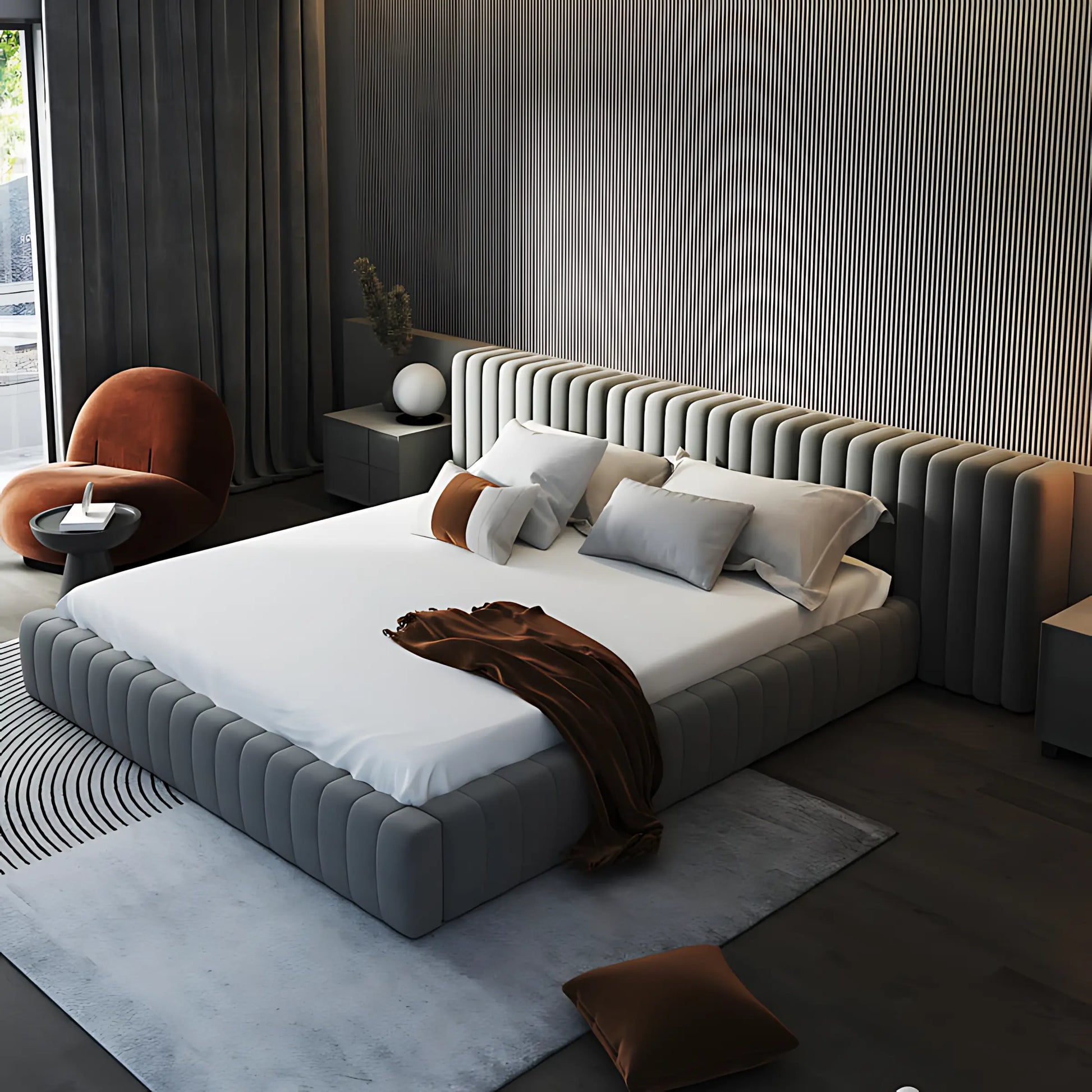 Crafted from premium materials, our Bed Frame guarantees comfort and durability. The high-quality fabric adds a touch of elegance to any bedroom, making it the perfect choice for a restful night's sleep. Experience luxury and style with every use.