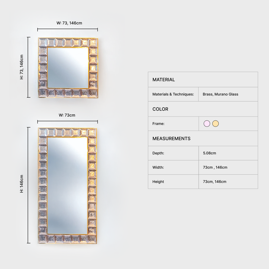 These mirrors have thick blocks of Murano glass, reminiscent of jewels that stud the outer border.