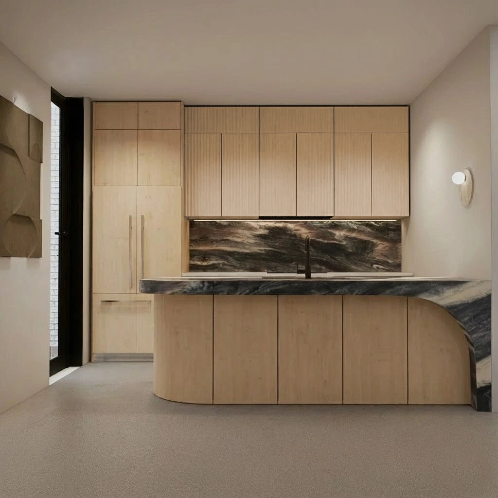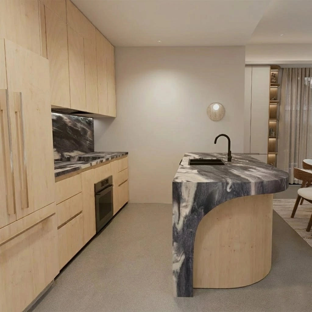 Crafted from premium countertop and splashback stones, these custom kitchen benchtops and matching splashbacks feature a refined, smooth surface with subtle natural veining that elevates any modern culinary space. Their clean, minimalist design provides versatile performance—perfect for meal preparation, kitchen islands, breakfast bars, or as a striking focal point in contemporary interiors.