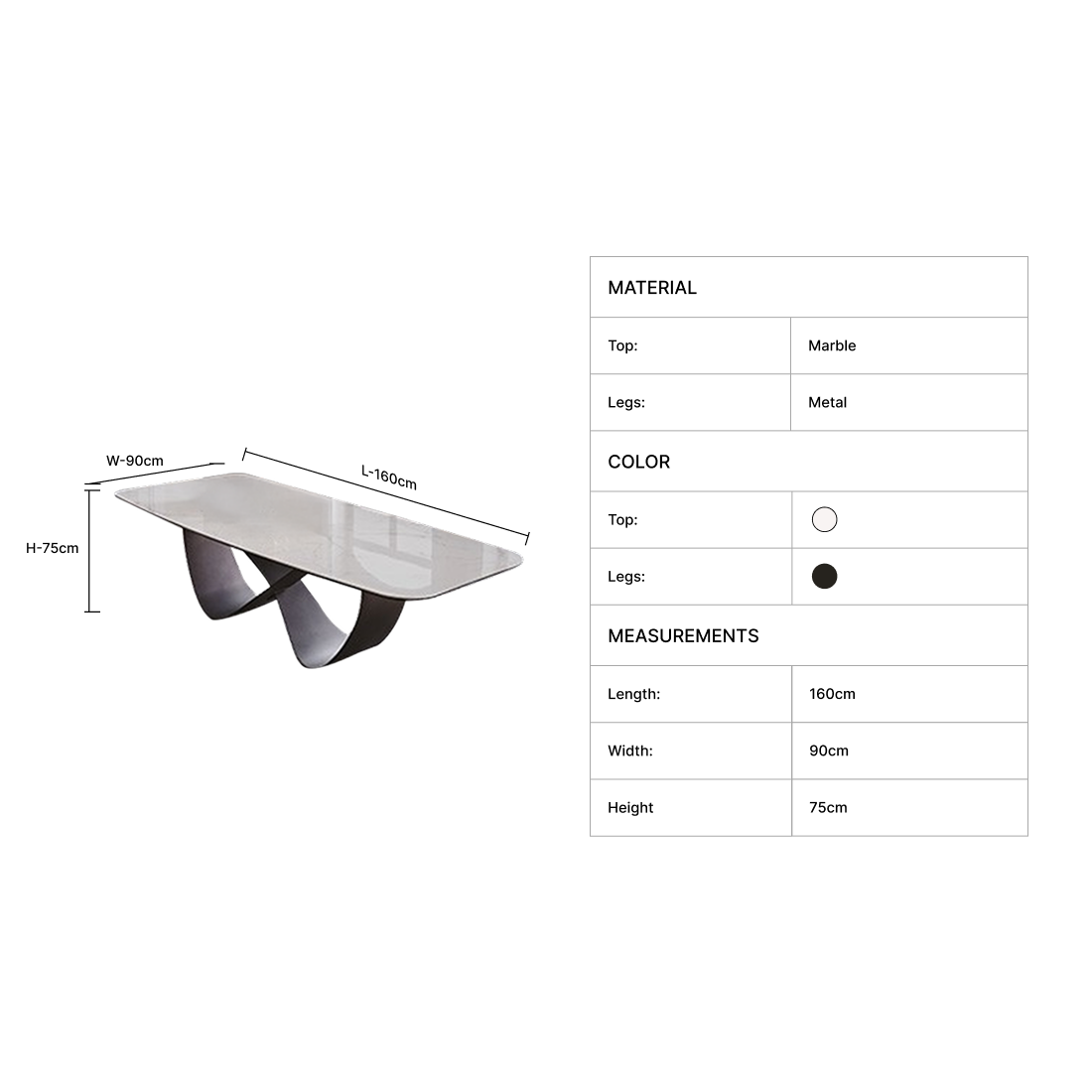 | Materials: | Marble Top, Metal Legs |