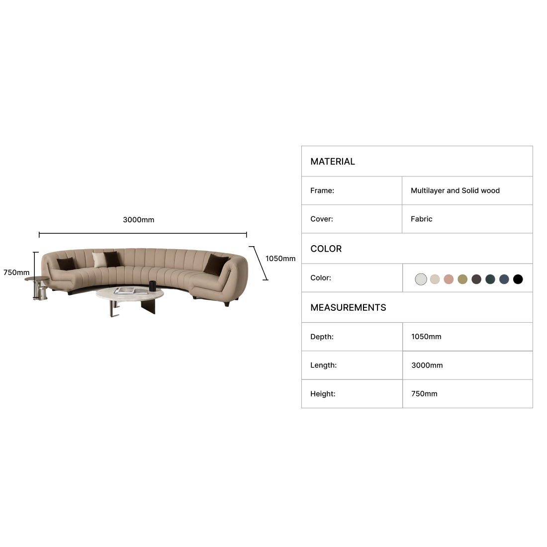 | Dimensions(mm): | L3000 x D1050 x H750mm |