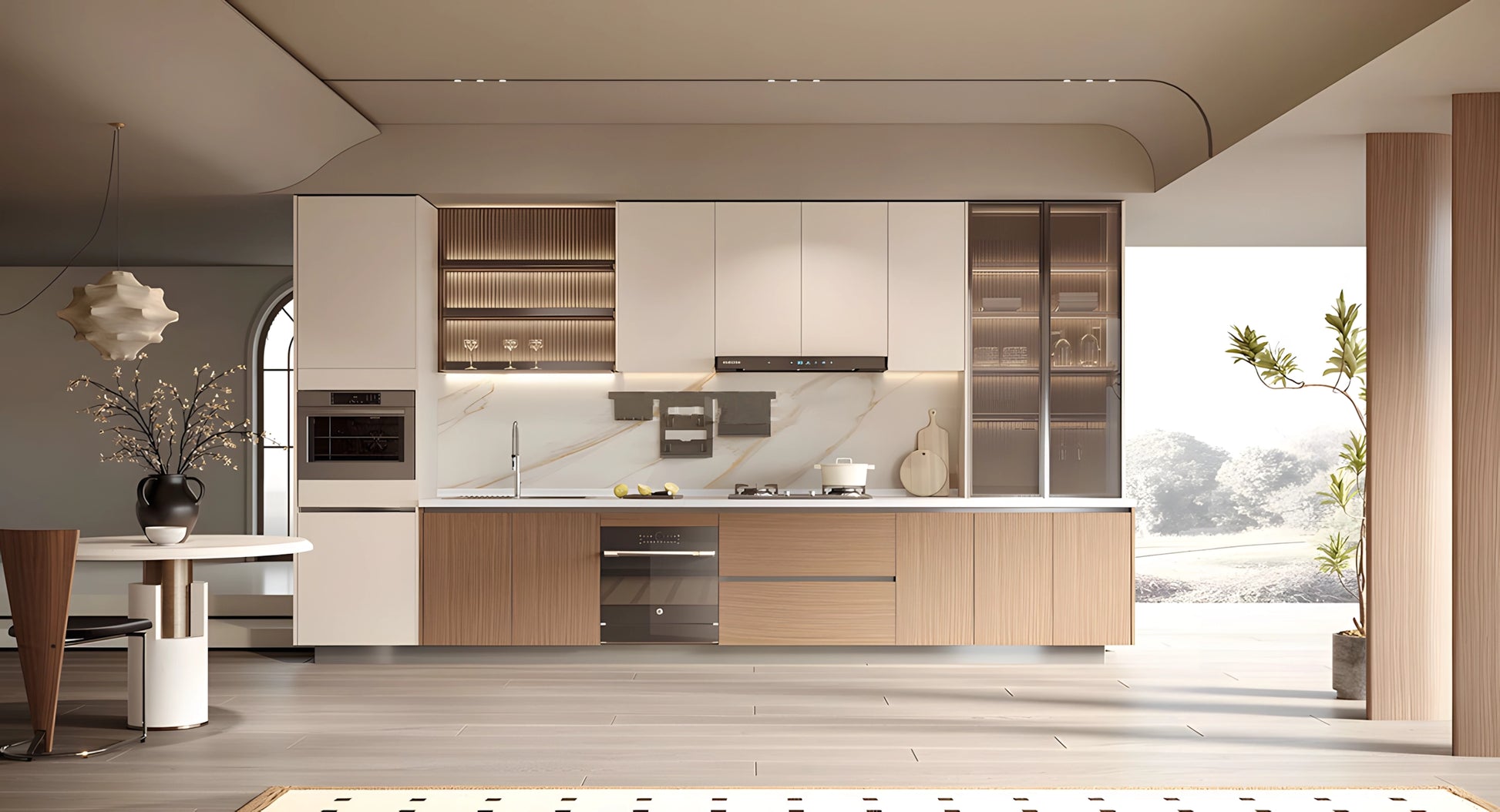 Fully customize your kitchen with our modular cabinet system – choose from a range of kitchen accessories like trash bins, cutlery drawers, bowl & pan baskets, sinks and mixers, side panels, and more. Select base, wall, island, or full-height cabinets by length to suit your space and budget.