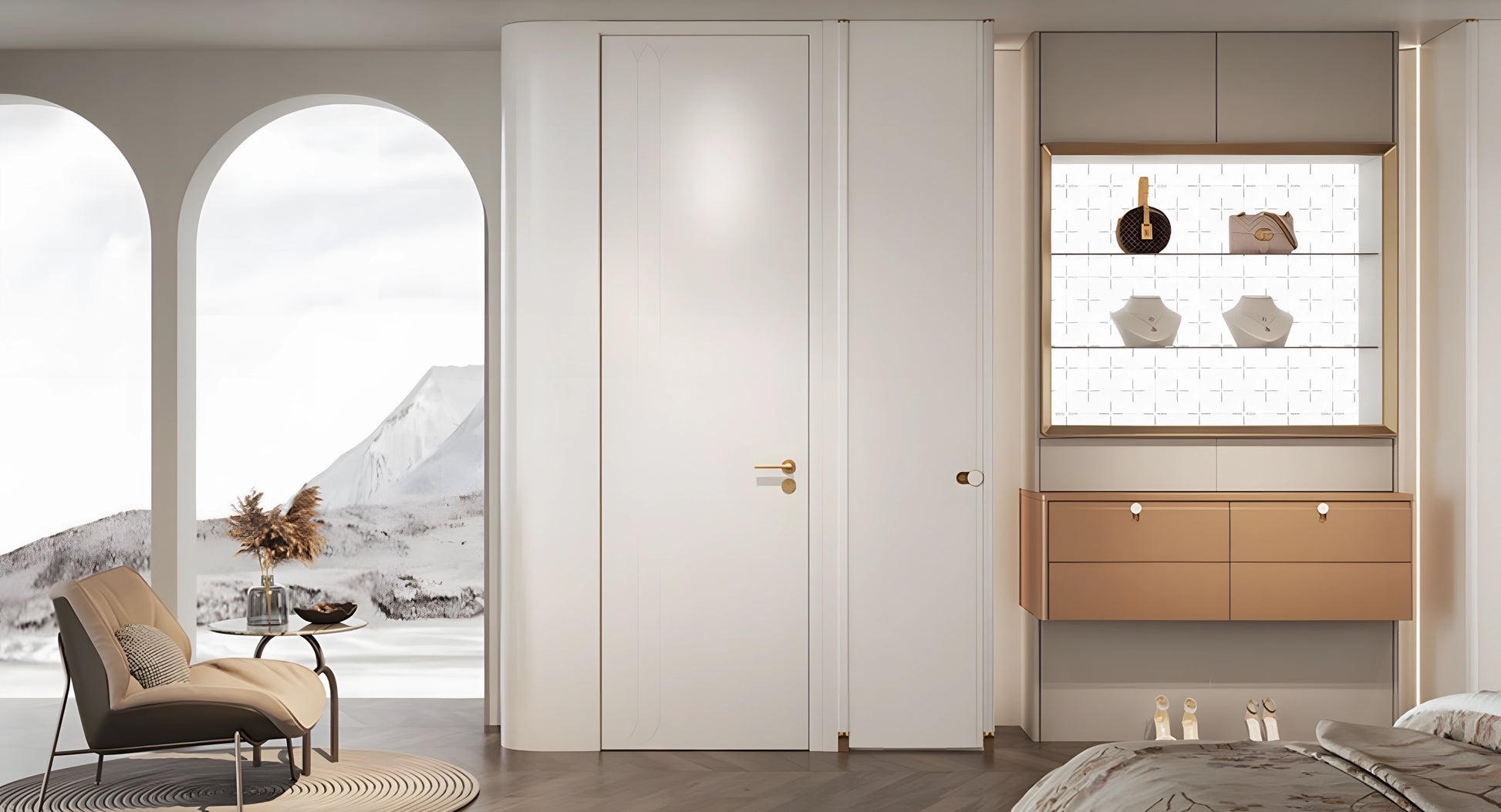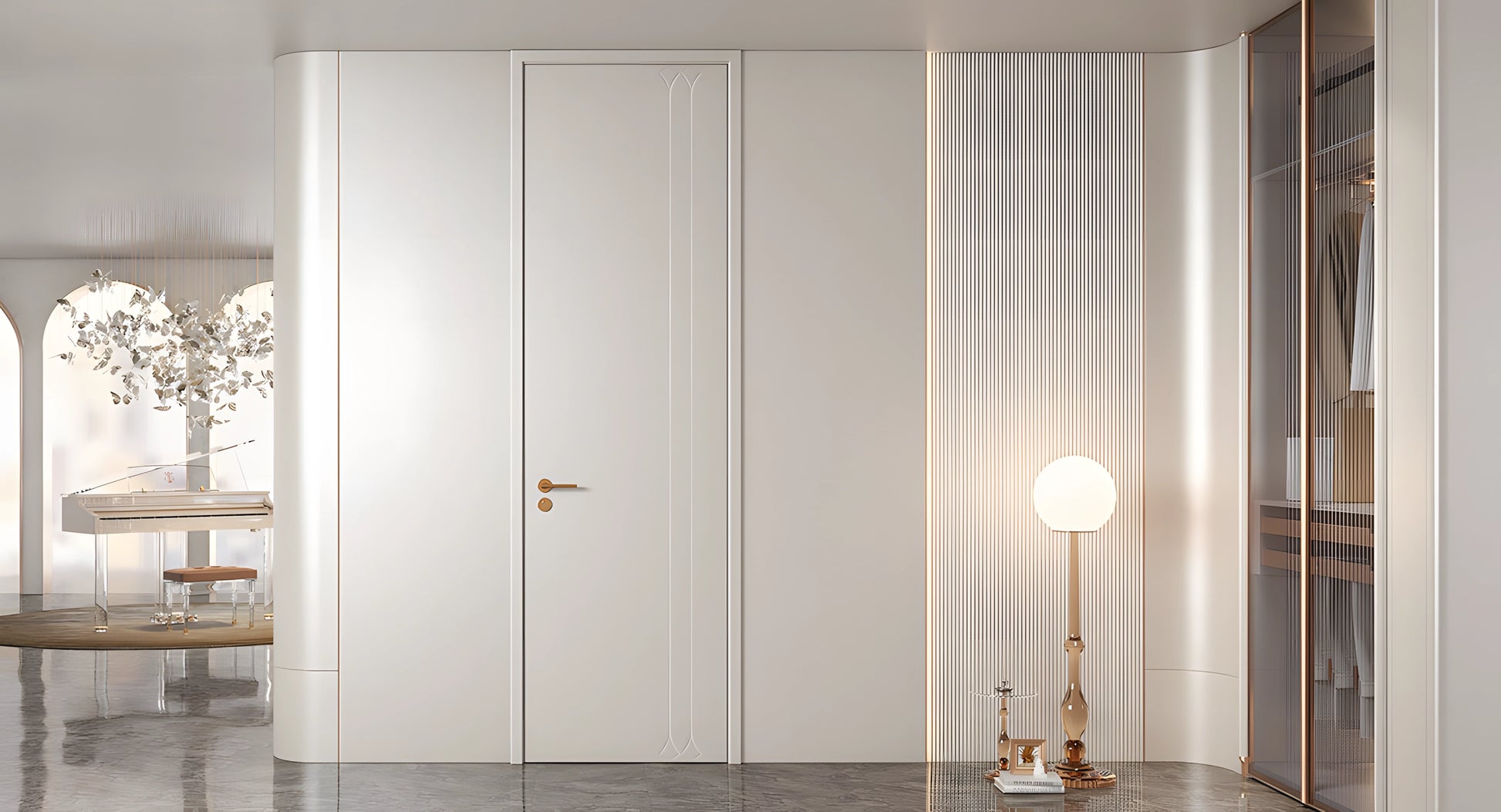 Using cream white to depict the elegance, fashion and charm of Paris, France. The classical Roman column element is integrated into the appearance of the wooden door, and the metal color handle is embellished to strengthen the luster and bloom the exquisite atmosphere.