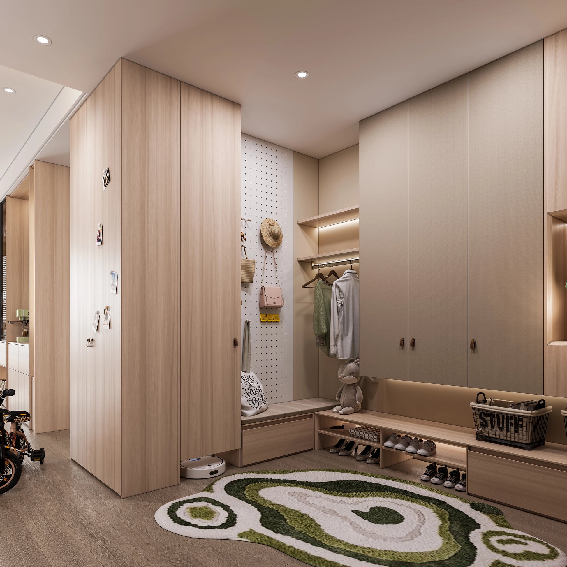 Our custom entry-storage solutions deliver a luxurious design that seamlessly blends elegance with functionality. Featuring a variety of styles, including built-in units, freestanding storage options, and modular systems, each component is crafted with high-quality materials and meticulous attention to detail.