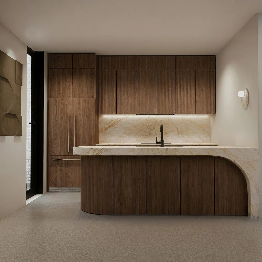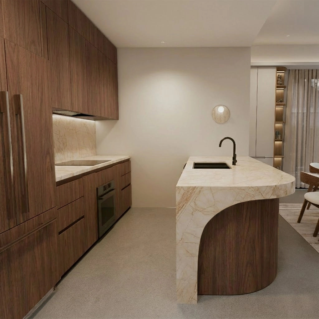Crafted from premium countertop and splashback stones, these custom kitchen benchtops and matching splashbacks feature a refined, smooth surface with subtle natural veining that elevates any modern culinary space. Their clean, minimalist design provides versatile performance—perfect for meal preparation, kitchen islands, breakfast bars, or as a striking focal point in contemporary interiors.