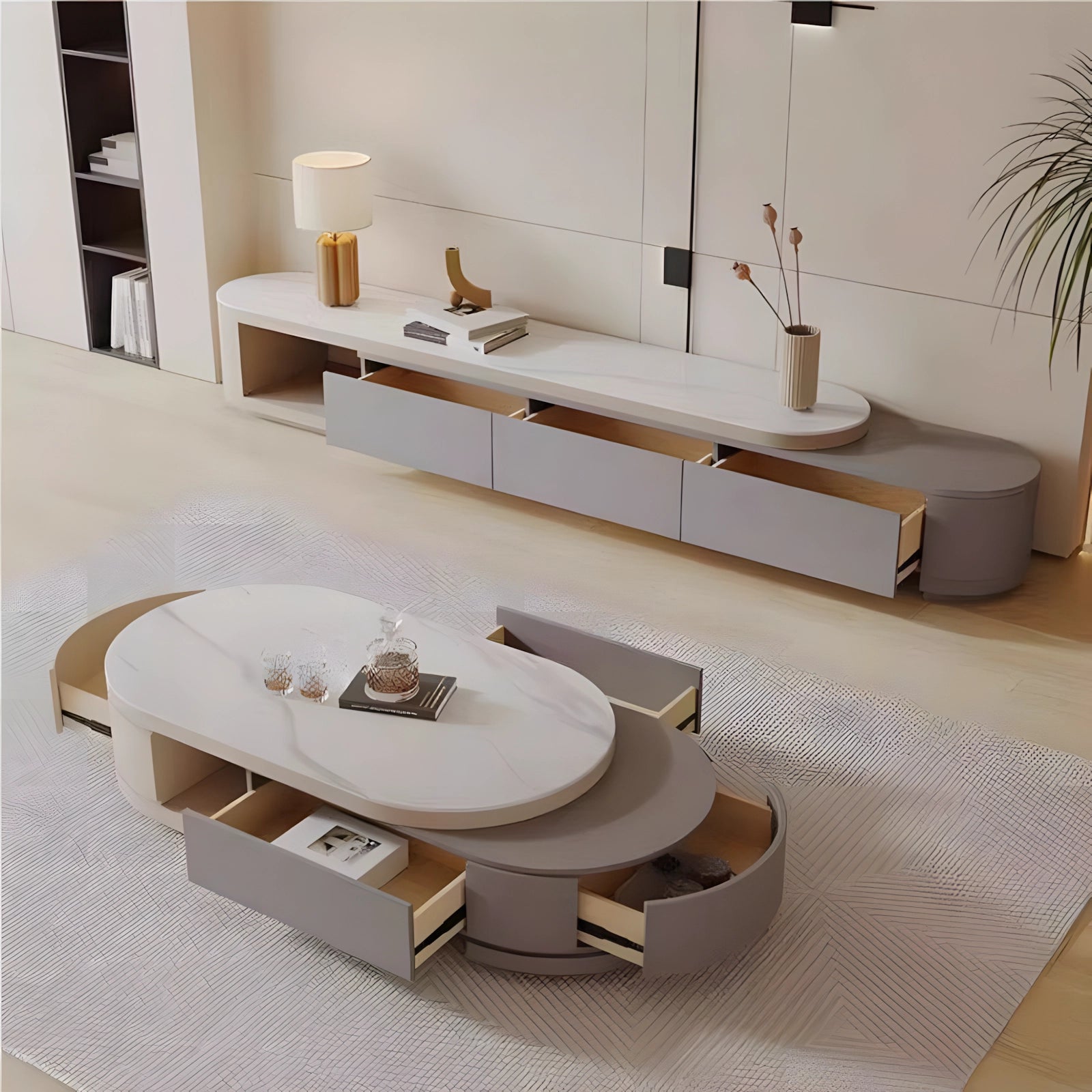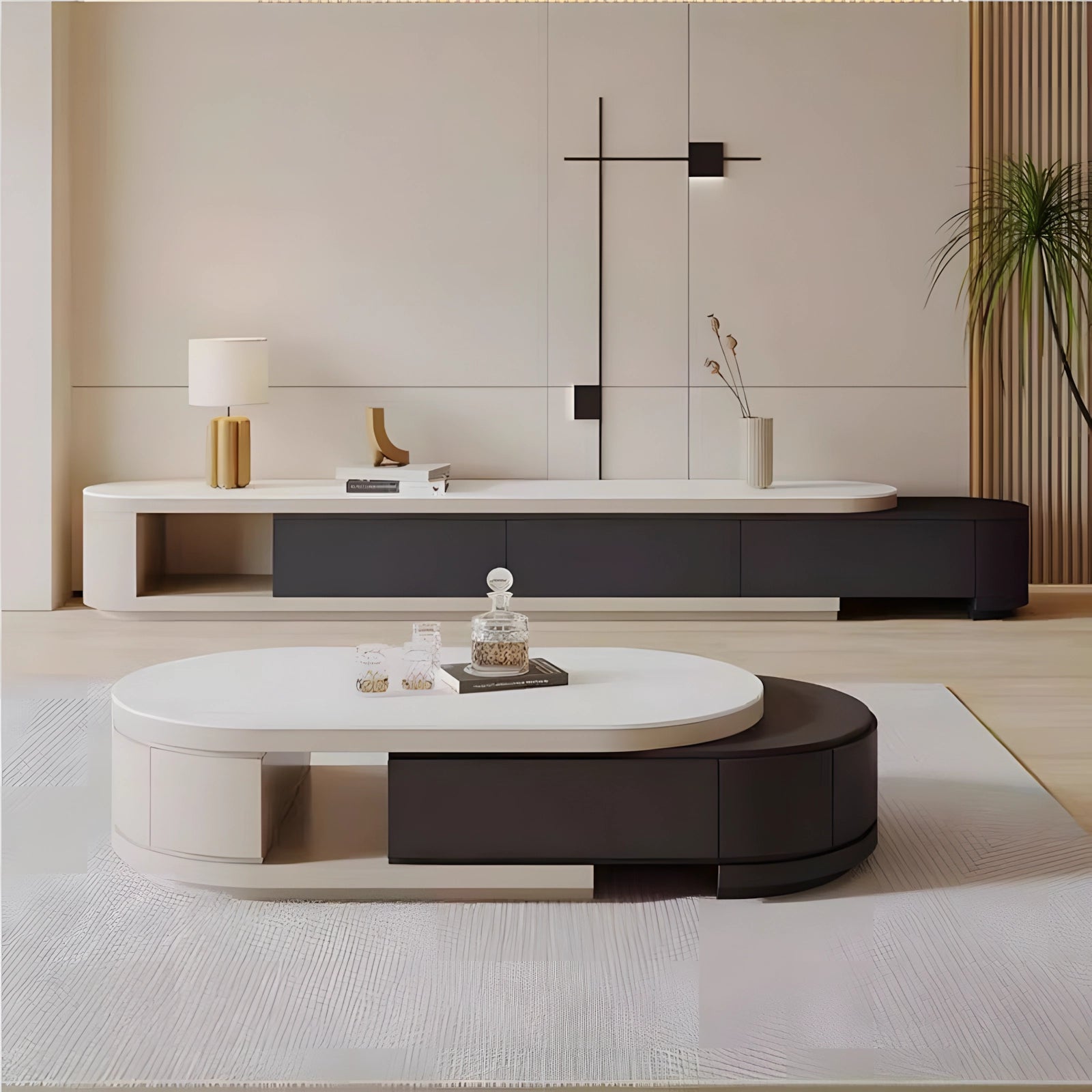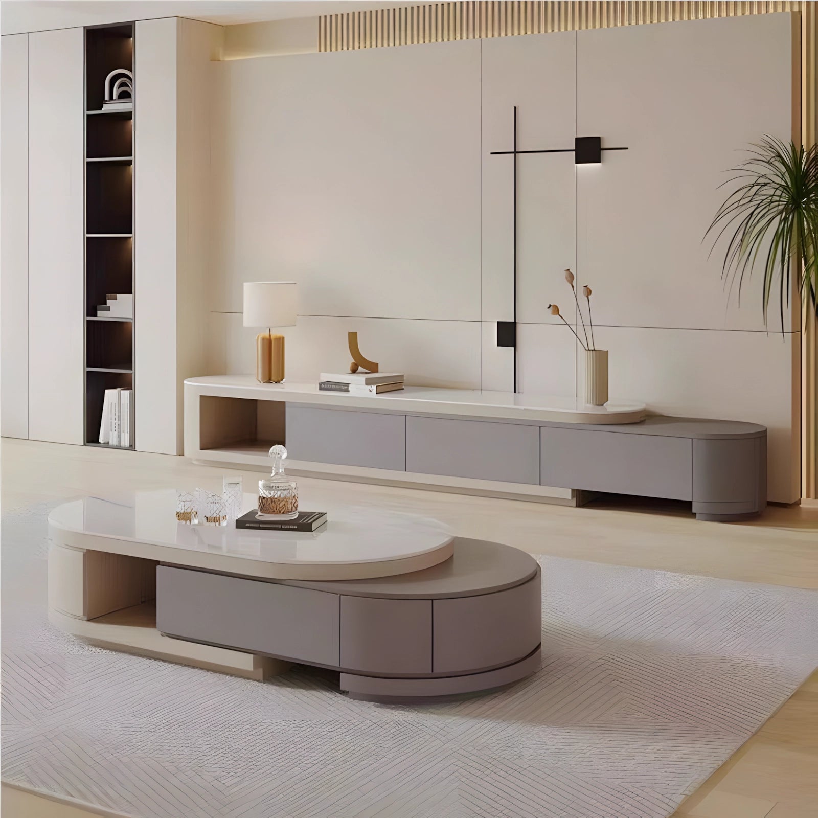 Our TV console is designed with clean lines and a contemporary silhouette, making it a versatile piece that blends seamlessly into any modern living space. Built on the principles of minimalism, it offers a clutter-free look while maintaining practical functionality.