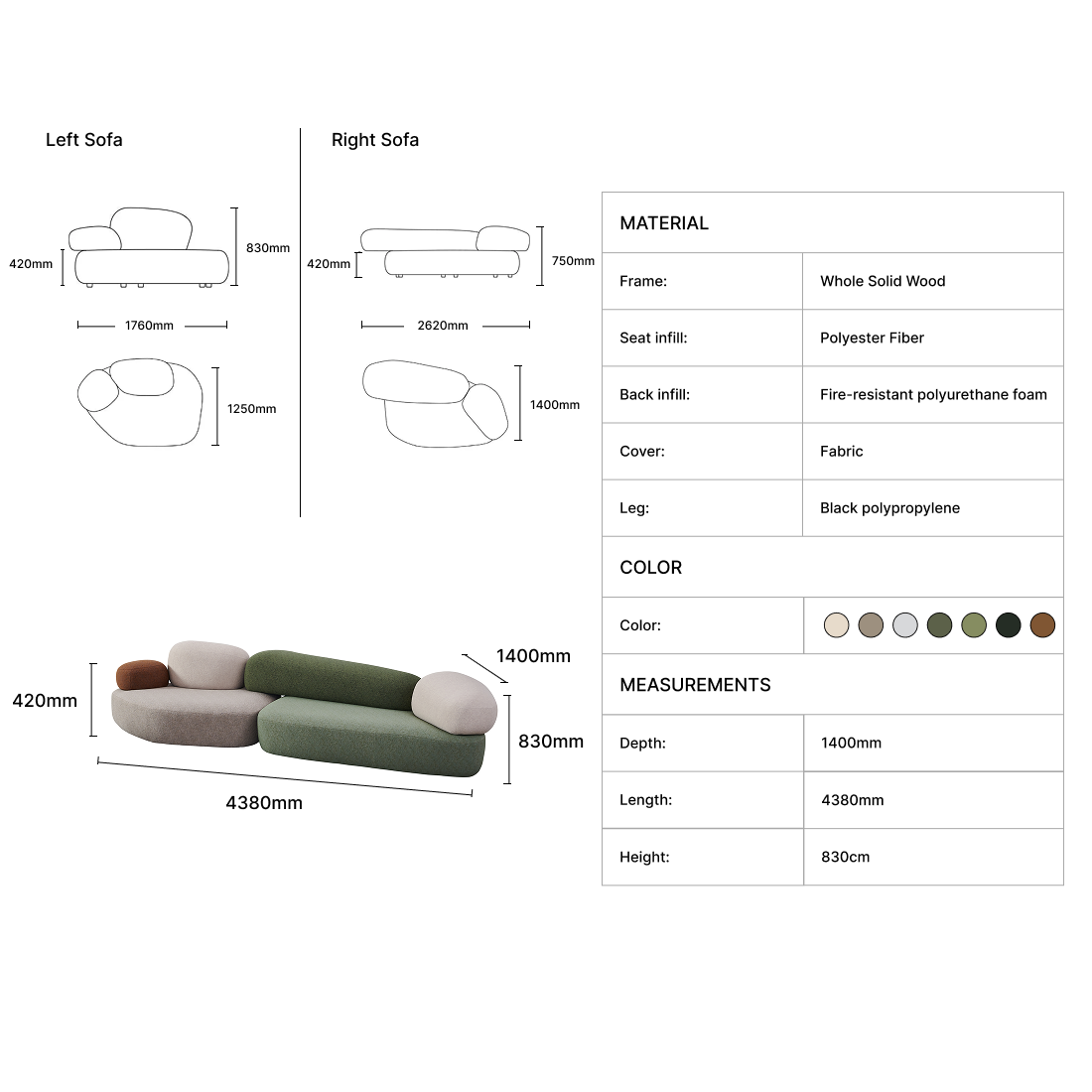 | Dimensions(mm): | L4380 x D1400 x H830mm |