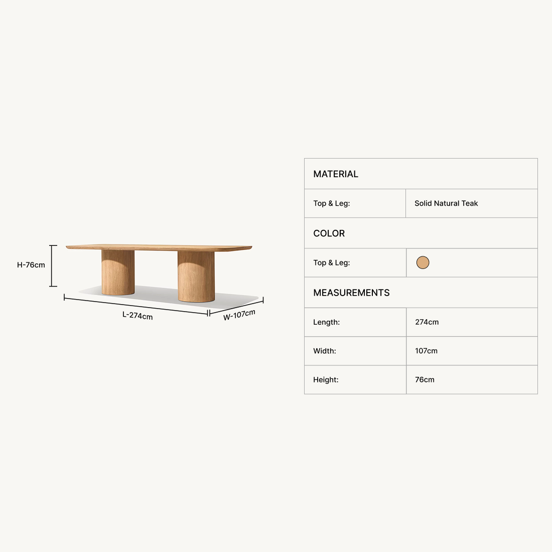 | Top & Base: | Solid Natural Teak |