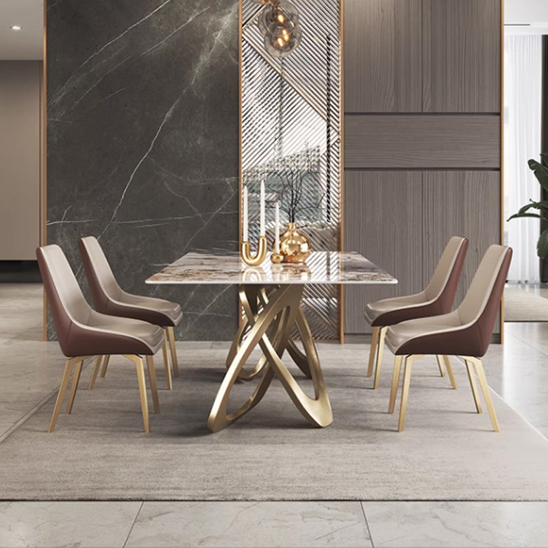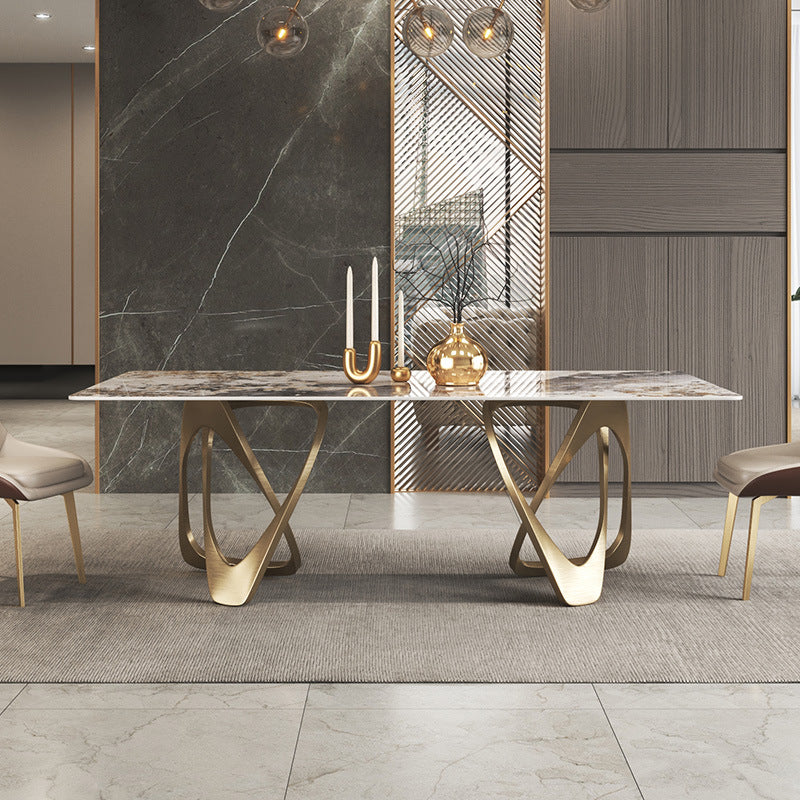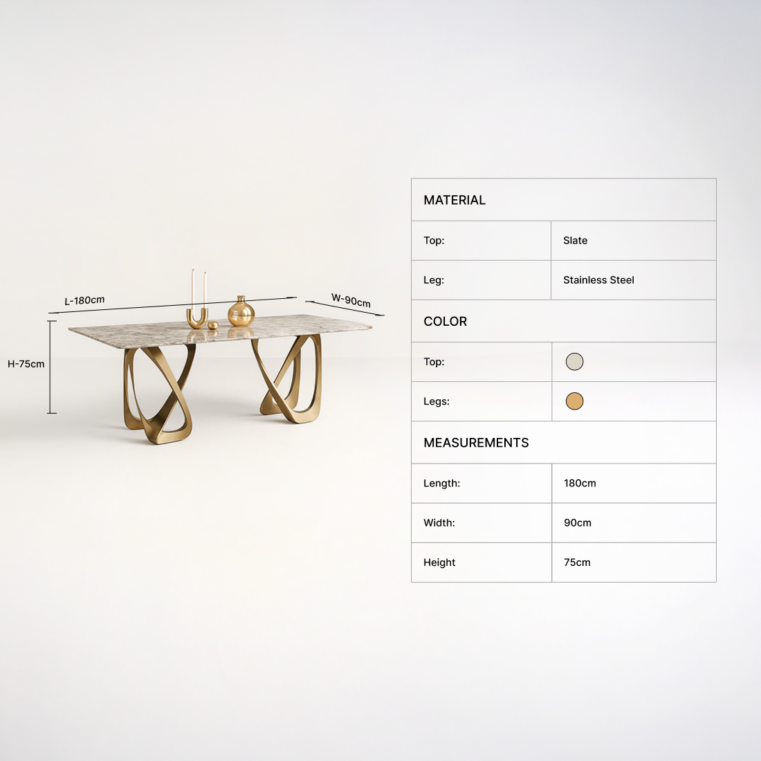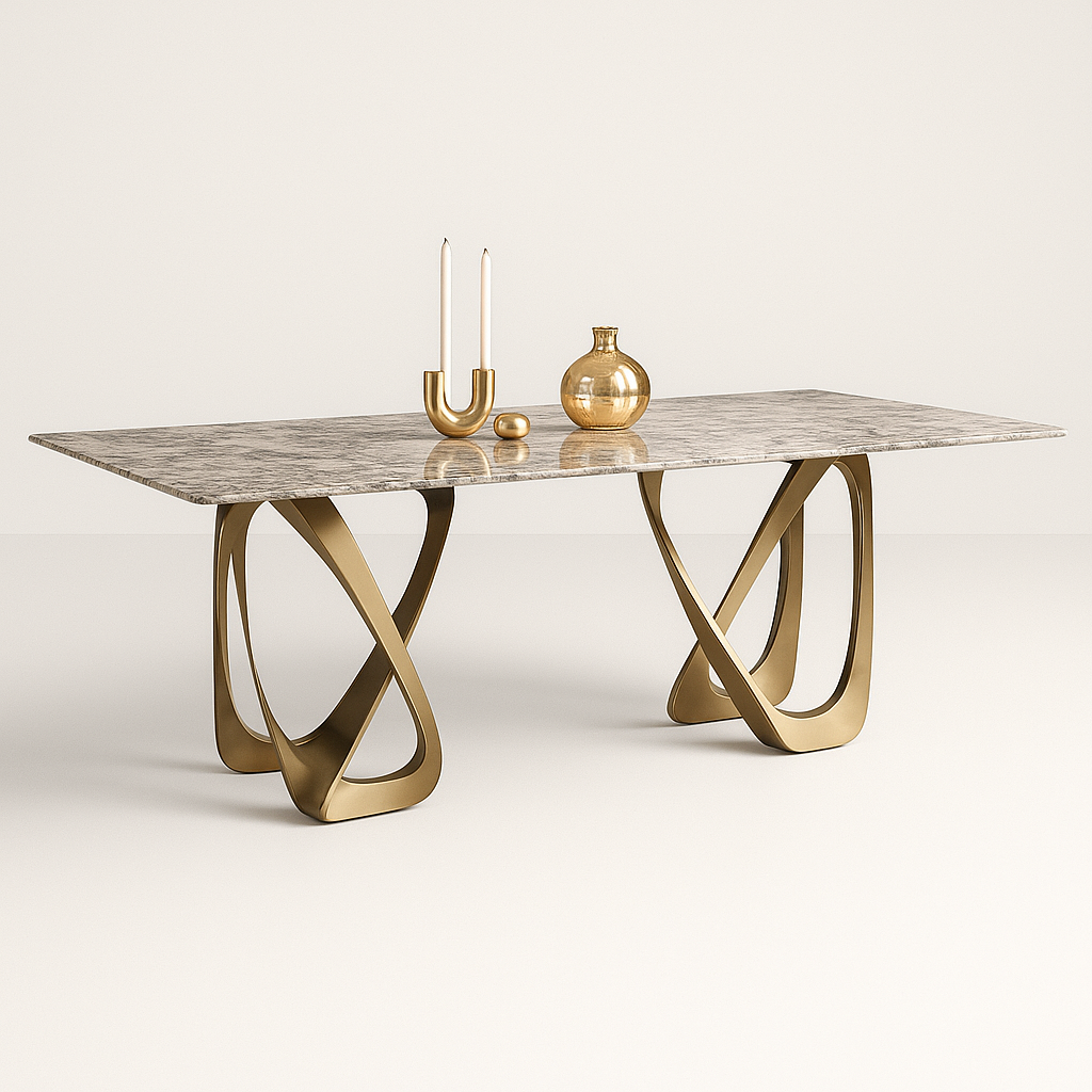 The Aurelia Loop Dining Table showcases a radiant marble top paired with sculptural gold-finished loop legs, creating a perfect balance of glamour and artistry. Its graceful curves and reflective accents bring a luxurious statement to any contemporary dining setting. Designed to impress, built to last.