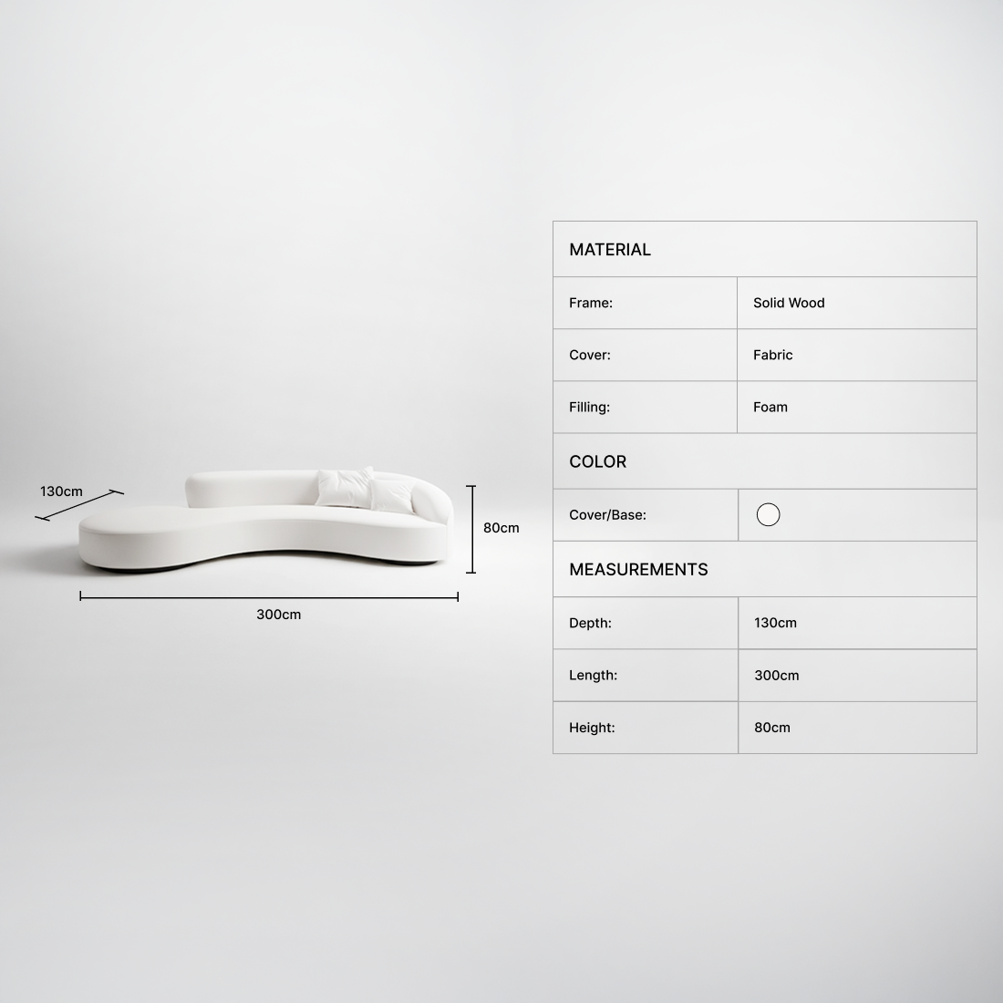 | Dimensions(cm): | L300 x D130 x H80cm |