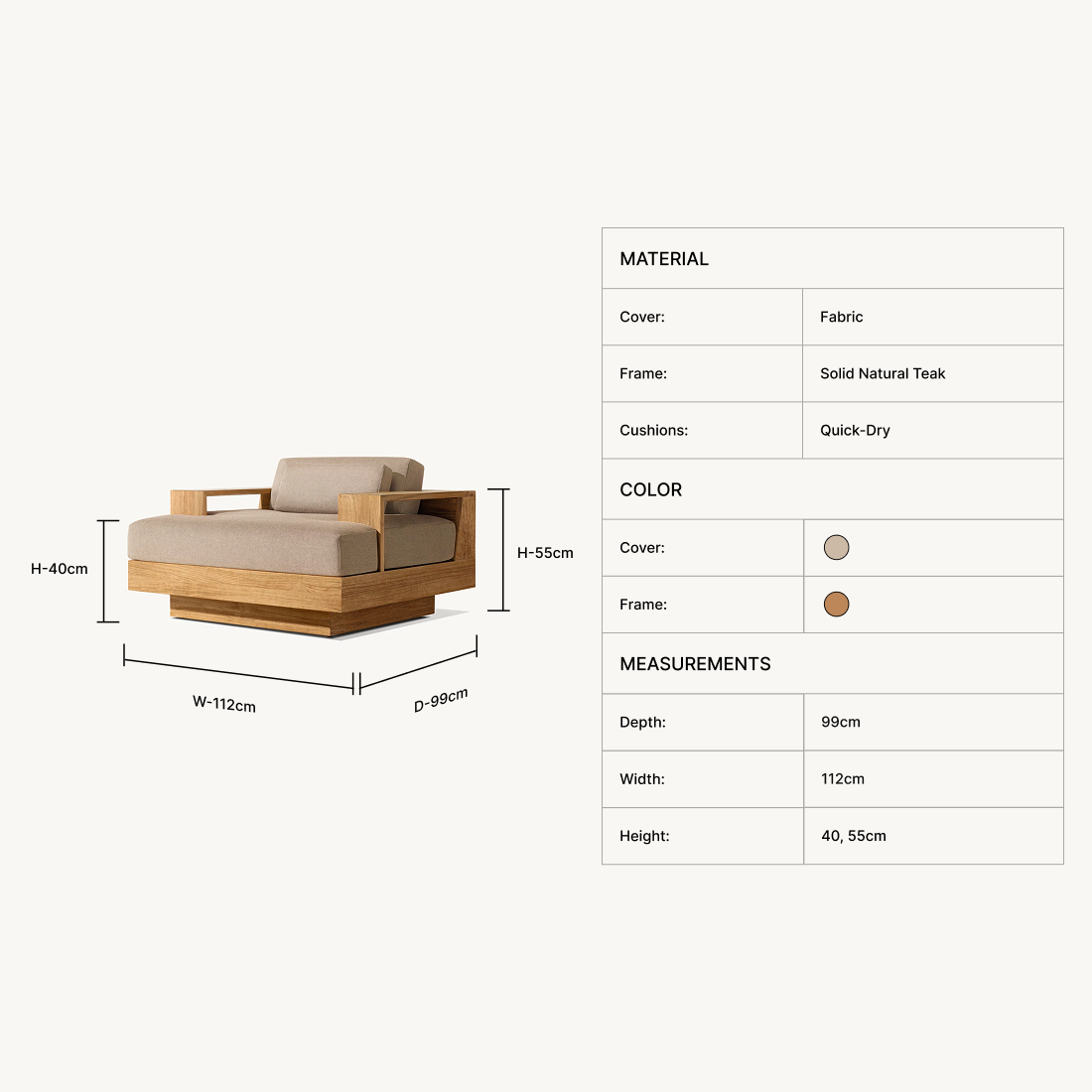 | Frame: | Solid Natural Teak |