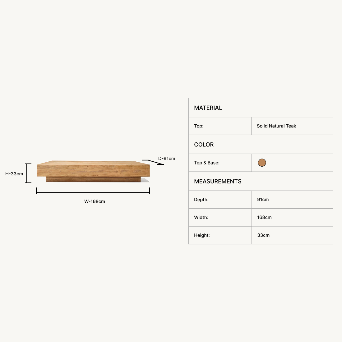 | Top & Base: | Solid Natural Teak |